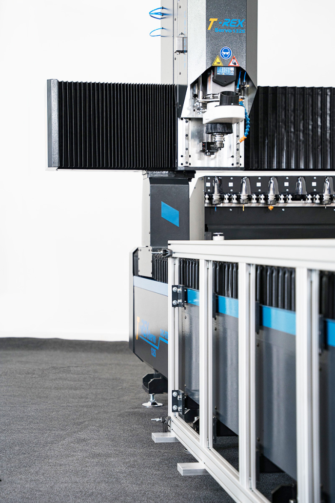 The T-Rex portal milling machine is optimized for 2D, 2.5D, and 3D material processing. With its large working area, the T-Rex is particularly well-suited for commercial and industrial panel processing. Whether you want to mill, cut, or engrave materials, the T-Rex offers high precision, making it the ideal partner for your tasks.