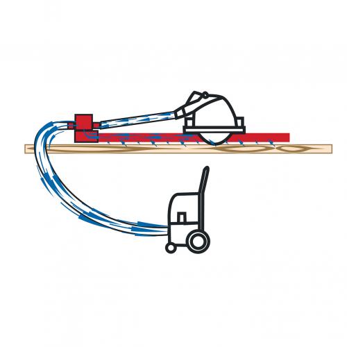 MAFELL Aerofix F-AF 1 -kiskosarja käyttää pölynpoistolaitteen tuottamaa imuvoimaa luodakseen imun kiskoprofiilin alle sovitinjärjestelmän avulla.